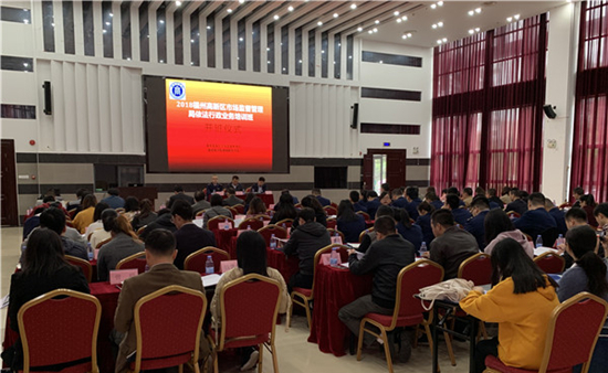 12月6日-7日,由福州高新区市场监督管理局主办,我校bat365在线中国官网登录入口承办的“2018年福州高新区市场监督管理局依法行政业务培训班”在福建中医药大学国际中医药培训中心开班。福州高新区市场监督管理局副局长李迎春,福州高新区党工委委员、管委会副调研员熊国华,副院长方方以及来自福州高新区市场监督管理局的干部职工、各企业人员共107名学员参加培训,开班仪式由李迎春主持。